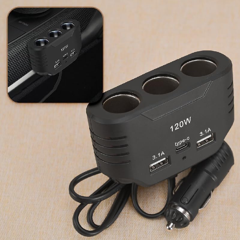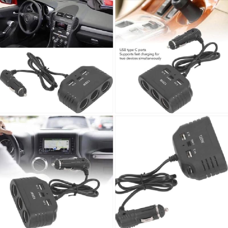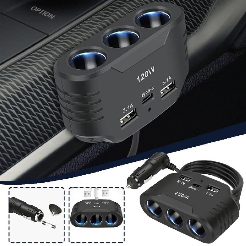 - ✅محول ولاعة سجائر للسيارة ، شاحن سيارة ، 12 فولت ، 24 فولت (2 يو اس بى - تايب سى - 3 عين )