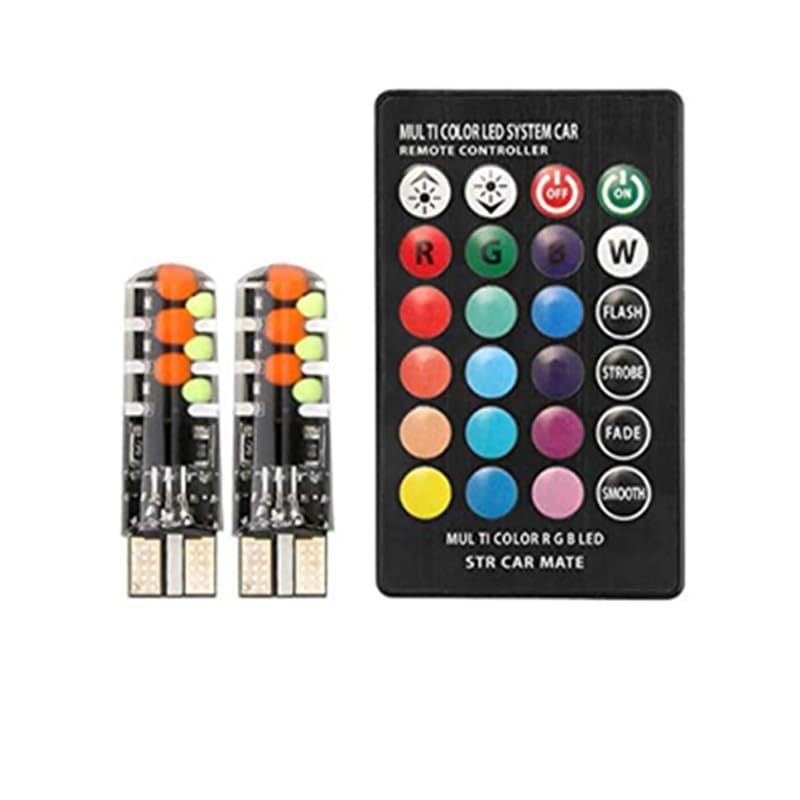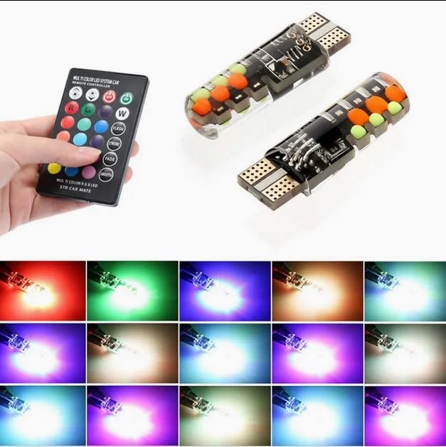- لمبة ليد T10 مع ريموت كنترول ، مصباح قراءة بأضواء ب16 لون، بديلة لإضاءة السيارة الداخلية/الخريطة/إضاءة السقف/الباب/لوحة الترخيص تيار 12 فولت من قطعتين