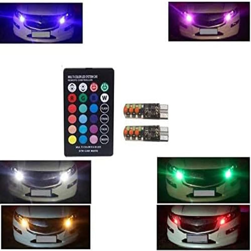 Generic - مصباح LED للسيارة T10 5050 RGB بجهاز تحكم عن بعد 6 اس ام دي متعدد الالوان w5w 501 - (ليد الوان) - من كابر مصر 2020