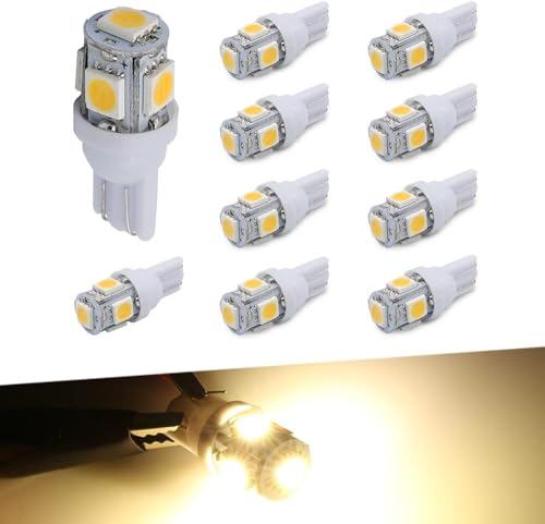 - سهلة التركيب، لا تحتاج إلى أدوات، مصابيح T10 LED هذه تتميز بتصميم التوصيل والتشغيل حتى تتمكن من تركيبها بنفسك في المرآب الخاص بك. استبدال مباشر لجميع أنواع اللمبات الاسفينية T10
