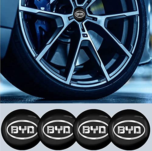 Generic - 4 قطع من ستيكر لاصق ثلاثي الابعاد لغطاء محور الاطارات - لسيارة بي واي دي من كابر مصر