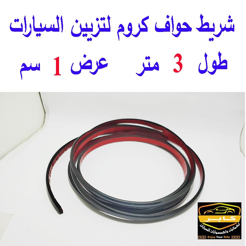 Generic - شريط تزيين السيارة ذاتي اللصق من الكروم والمصد الجانبي والنافذة والباب مقاوم للخدش(لون اسود ، طول 3 متر فى عرض 1 سم) من كابر مصر 2020