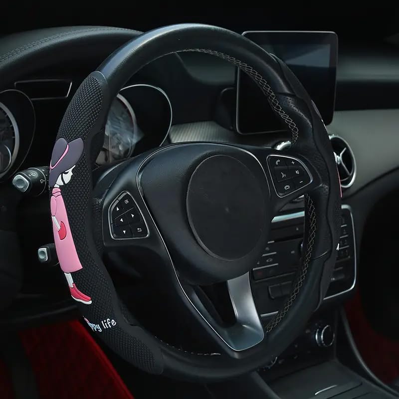 Generic - غطاء حماية لطارة الدركسيون طارة عجلة قيادة السيارة للنساء والبنات ، اكسسوار سيارة امن ومقاوم للانزلاق بمقاس مناسب لجميع السيارات - اسود - من كابر مصر 2020