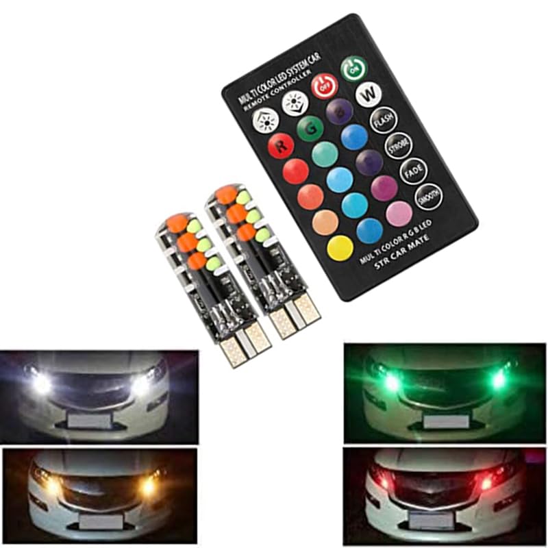 Generic - مصباح انظمة اضاءة LED متعدد الالوان للتحكم عن بعد للسيارة موديل T10 لفوانيس السيارة لمبة واطى و صالون السيارة واضاءة لوحة الترخيص وغيرها - (ليد الوان) - من كابر مصر 2020