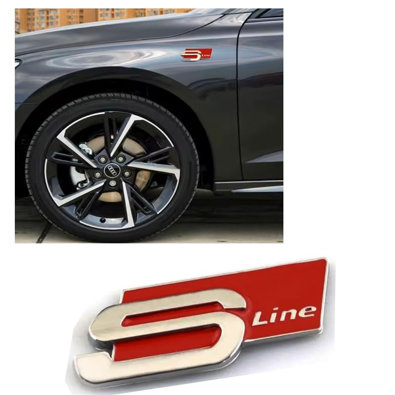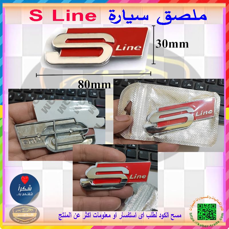 Generic - ملصق سيارة معدن ثلاثي الابعاد بعبارة S Line ، احمر فى فضى مقاس 8 *3 سم - من كابر تريد