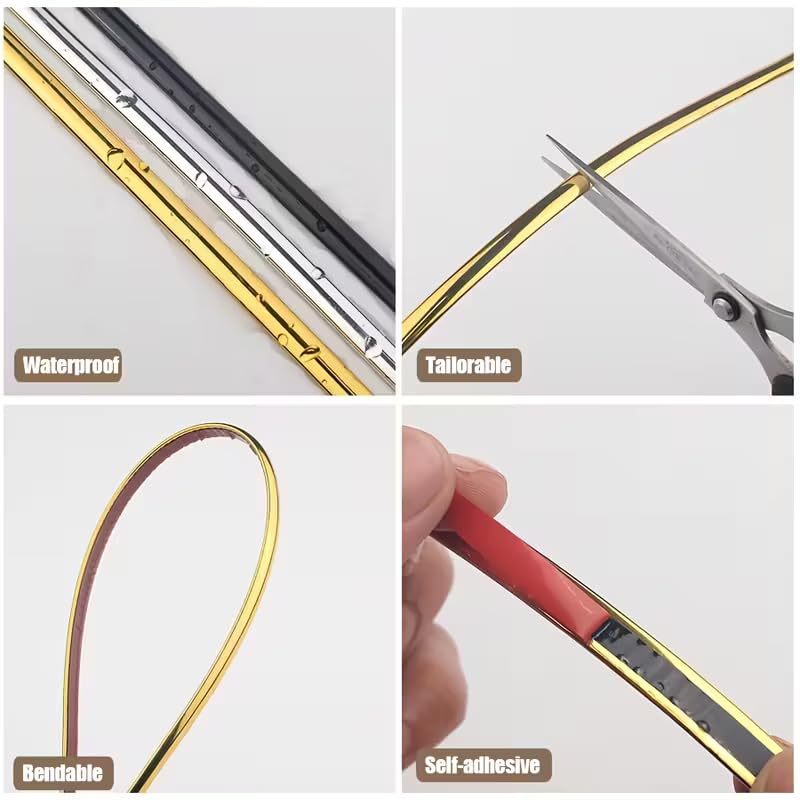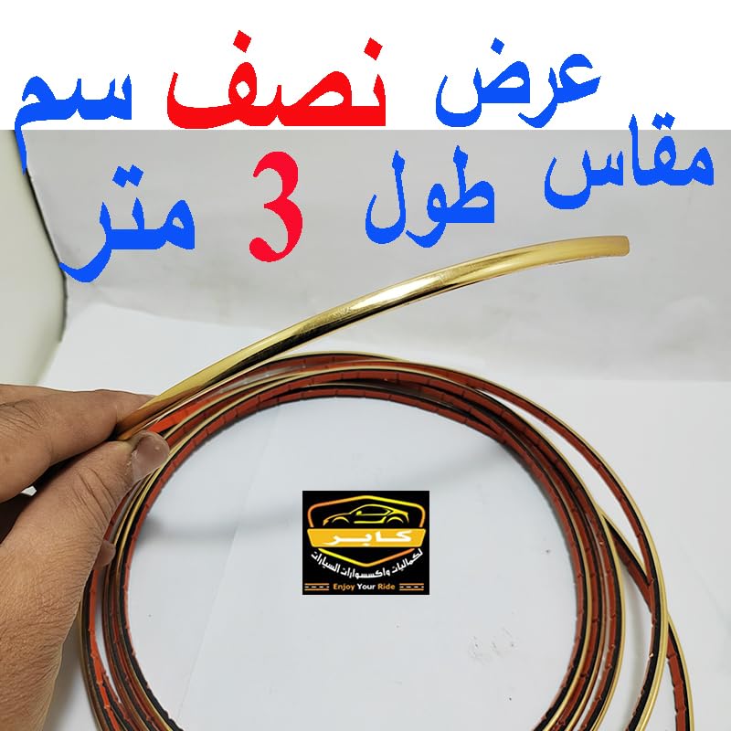 Generic - شريط لاصق من الكروم ديكور وتزيين السيارة الداخل والخارج وايضا يستخدم فى المنازل والمكاتب متعدد الاستخدامات(ذهبى ، طول 3 متر عرض 0.5 نصف سم) - من كابر تريد