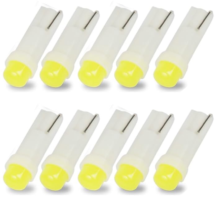 Generic - 10 قطع مصباح داخلي للسيارة T5 12 فولت LED 1 اس ام دي للوحة العدادات مجموعة مصابيح ليد سفايا استخدامات متنوعة (لون ابيض - 10 قطع) - من كابرمصر 2020