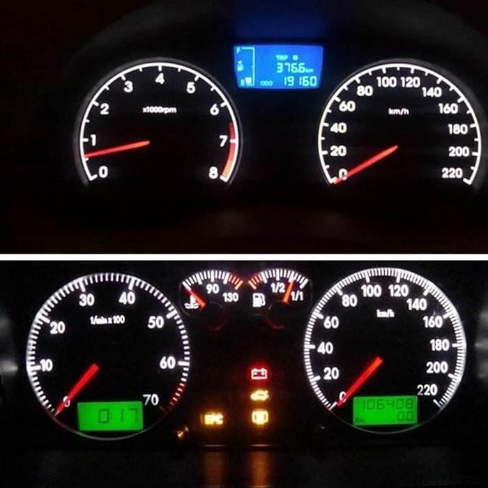- استبدل الضوء بقاعدة تي 5 ، مثل مؤشرات لوحة العدادات ، عداد السرعة ، مقياس سرعة الدوران ، مجموعة القياس ، مؤشر فحص المحرك ، مؤشر الشعاع العالي ، أضواء شيفتر ، أضواء لوحة القيادة ، الضوء الجانبي ، ضوء المؤشر ، العلامات الجانبية ، أضواء التشغيل ، أضواء الزاوية والمصد ، أضواء لوحة الترخيص ، لوحة القيادة وعلب المصنع ، إلخ.