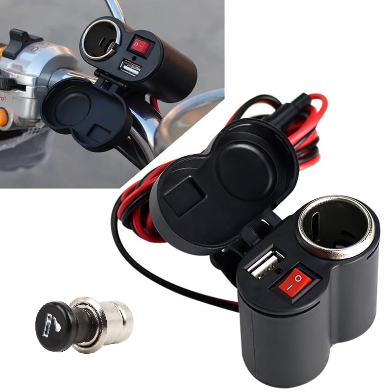 Generic - مدخل ولاعة السجائر وشاحن يو اس بي 12 فولت ، مقاوم للماء يستعمل في السيارة او الدراجات والموتوسيكلات وغيرها (مشترك + ولاعة ، كود: 9036) من كابرمصر 2020