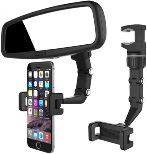 Generic - حامل موبايل يثبت على مرآة الرؤية الخلفية 360 درجة للسيارة متعدد الوظائف يثبت على الموبايل لتثبيت وتعديل حامل الموبايل في السيارة (رمادي) (كود:4208) - من كابرمصر 2020