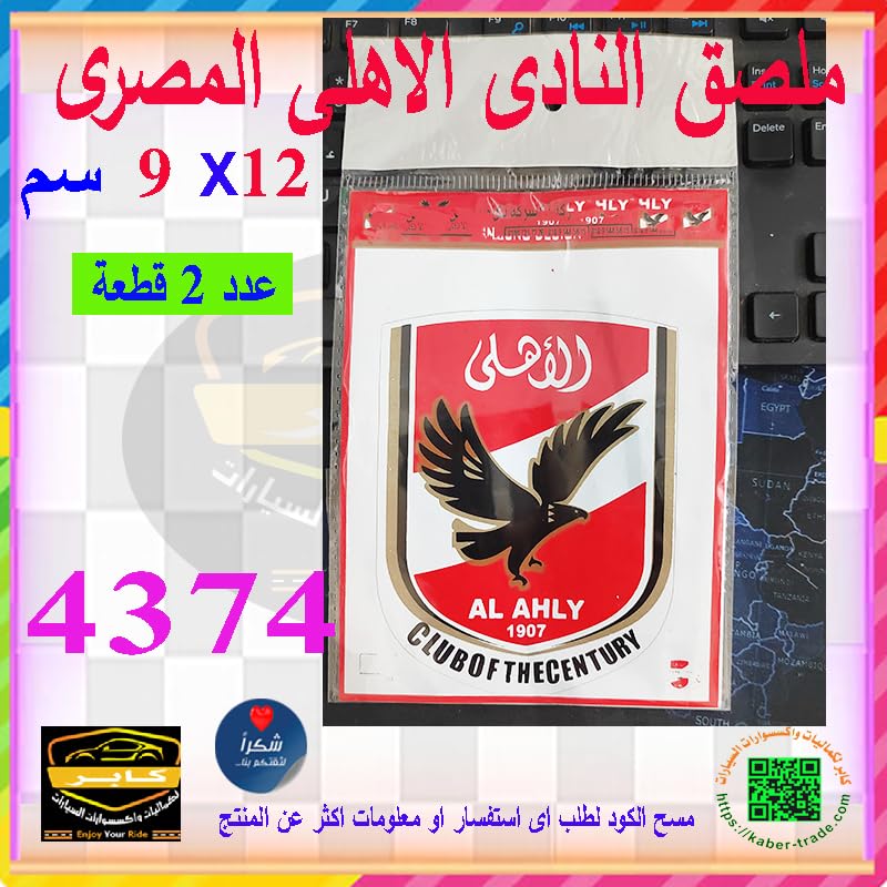 Generic - ملصق النادى الأهلي للسيارة والكمبيوتر والموبايل وبلاي ستيشن والموتوسيكلات( ورق لصق ، مقاس : 12 * 9 سم ، عدد 2 قطعة ، كود: 4374) من كابرمصر 2020