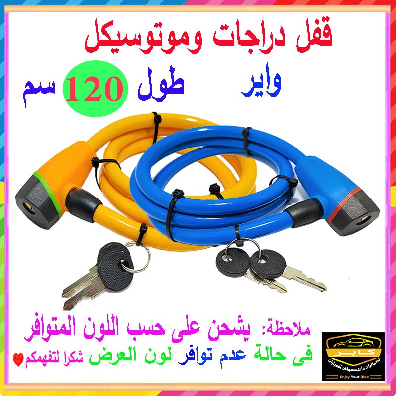 Generic - قفل دراجة وموتوسيكل واسكوتر ، عالمى واير قوى ومتين للدراجة والموتوسيكل وغيرها ( ازرق ، طول 120 سم ، كود: 9496) من كابرمصر 2020