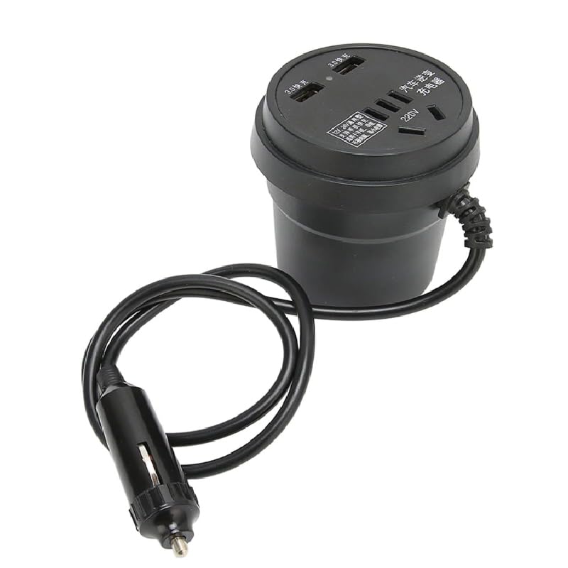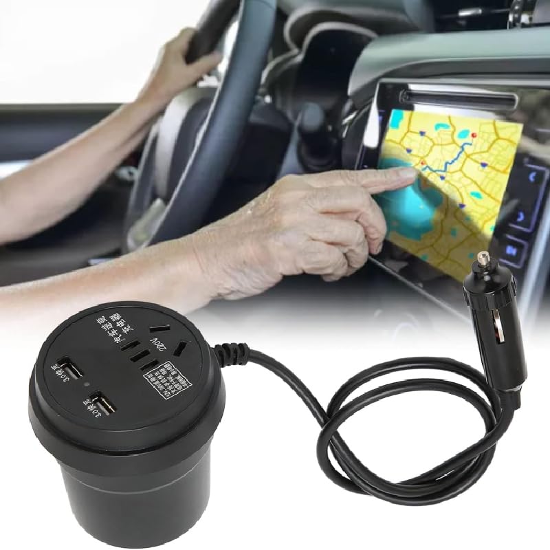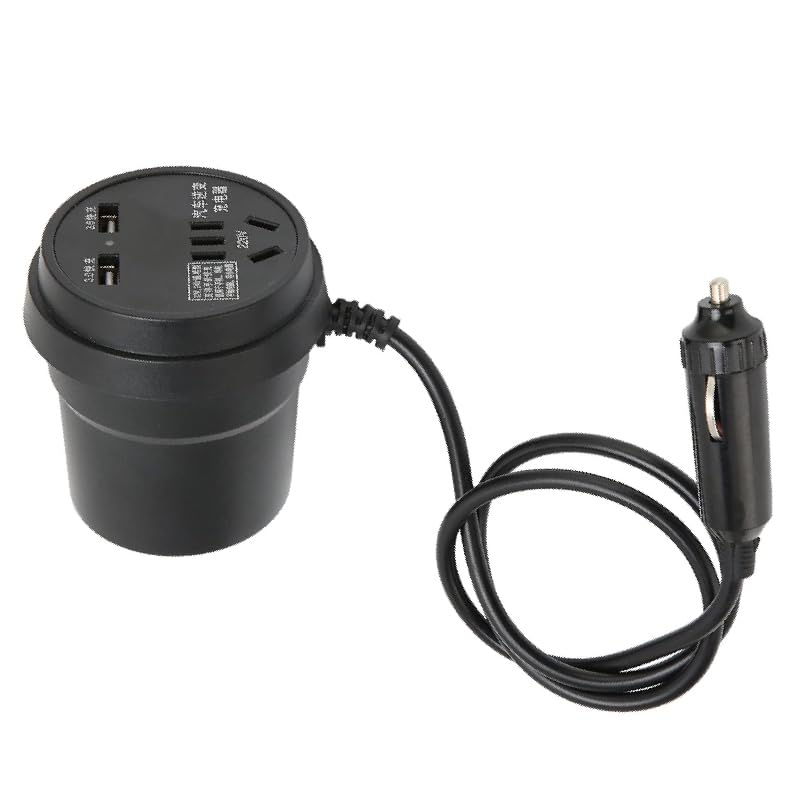 Generic - شاحن للسيارة بمنفذ يو إس بي ولاعة السجائر، متوافق مع ملحقات السيارة العالمية، مع عاكس كهربائي ومقبس تيار متردد 220 فولت (كود : 9081) من كابرمصر 2020