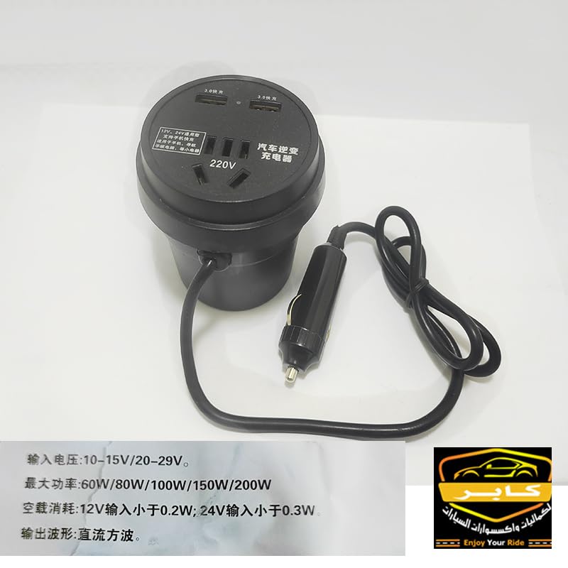- ✅عاكس سيارة 2 منفذ USB: عاكس كهربائي للسيارة من 60 الى 200 واط يحتوي على منفذي USB، يمكنه شحن الهواتف المحمولة وأجهزة التابلت في نفس الوقت، بحد أقصى 3.0 امبير.. محول تيار مستمر 10-15 / 20-29 فولت إلى تيار متردد 220 فولت