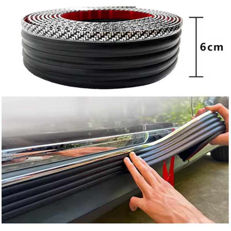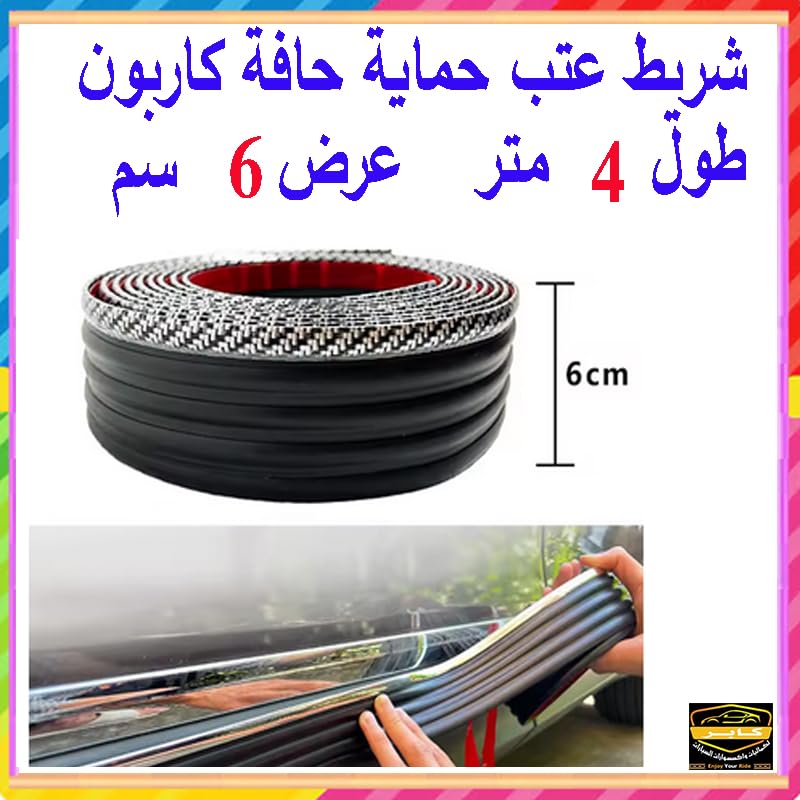 Generic - شريط حماية مرن من المطاط مضلع بحافة كاربون لحافة باب السيارة، ممتص الصدمات الخلفي ( طول 4 متر عرض 6 سم ، كود : 9562)- من كابرمصر 2020