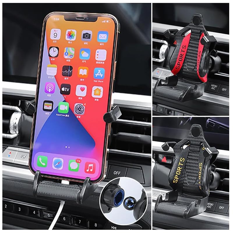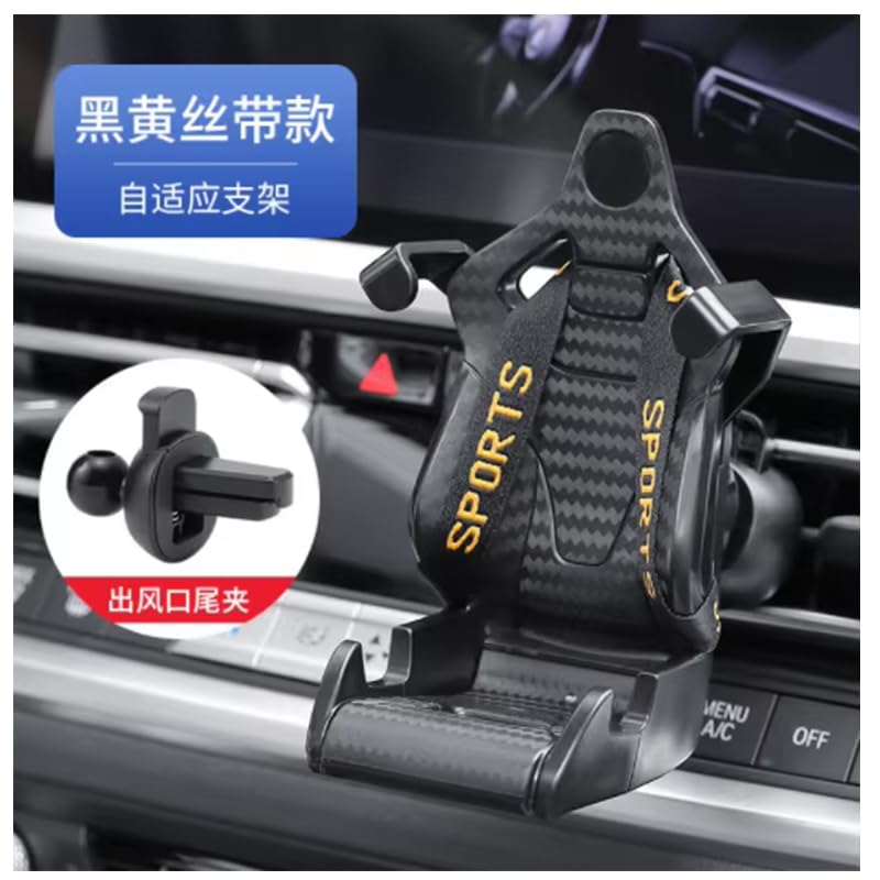 - ✅حامل هاتف للسيارة بتصميم مقعد سباق رياضي. يتميز بتصميم يشبه مقعد السيارة الرياضي مع حزام صغير لتأمين الهاتف.