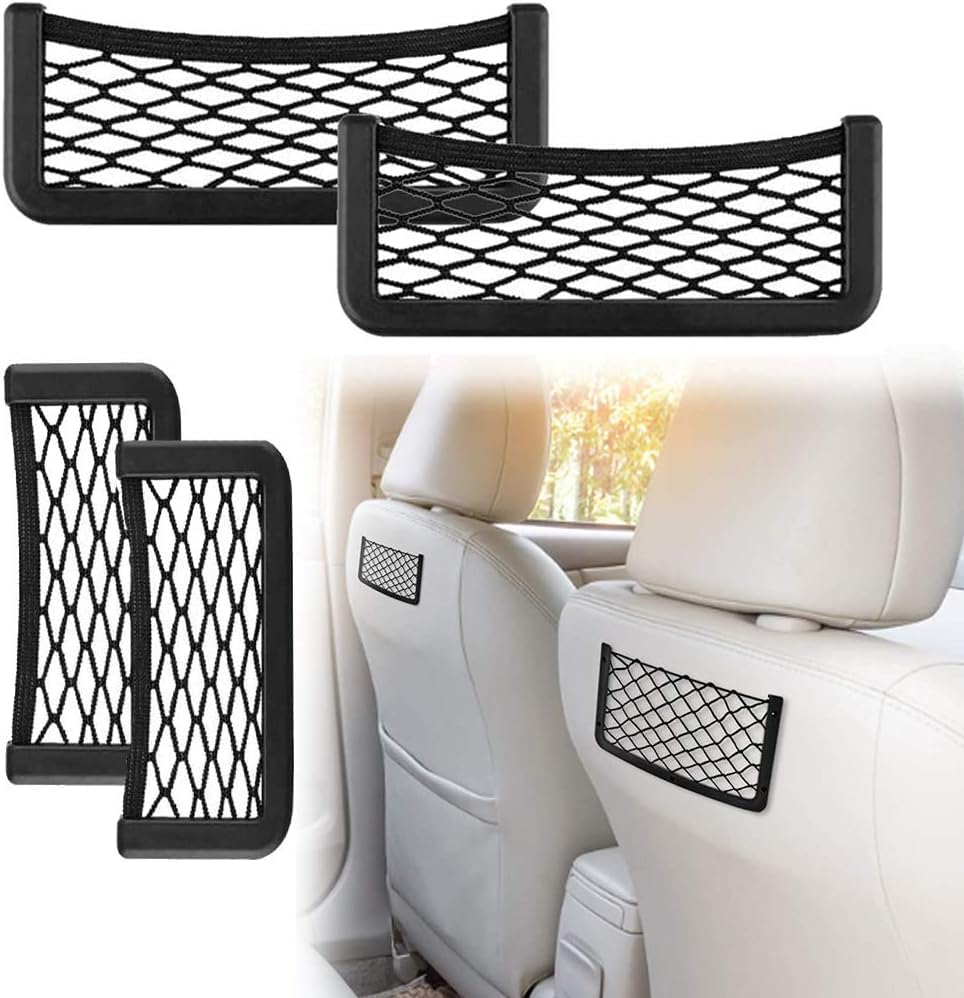 Generic - شبكة السيارة شنطة تخزين، شنطة شبكية منظمة وحاملة للموبايل حامل منظم شبكي اسود باطار بلاستيكي، جيب تخزين للسيارة، للموبايل والمتعلقات - 4 قطع (2كبير/2صغير) من كابرمصر 2020