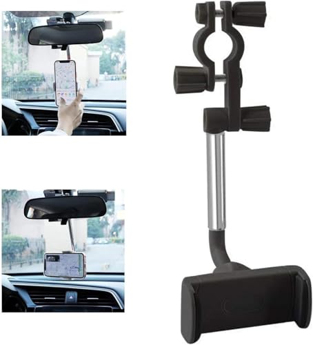 Generic - حامل موبايل متعدد الوظائف سهل التركيب للتثبيت على مراة الرؤية الخلفية للسيارة، متوافق مع جميع انواع الموبايلات بملائمة عالمية فى السيارة (كود:3380) - من كابرمصر 2020