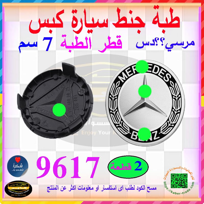 Generic - أغطية جنوط سيارة غطاء محور اطارات السيارة، طبة جنط ، مناسبة لمحور الاطارات الامامية والخلفية 2 قطعة (متوافق مع مرسي؟ /؟دس اسود ، قطر 7 سم ، كود : 9617 ) من كابرمصر 2020