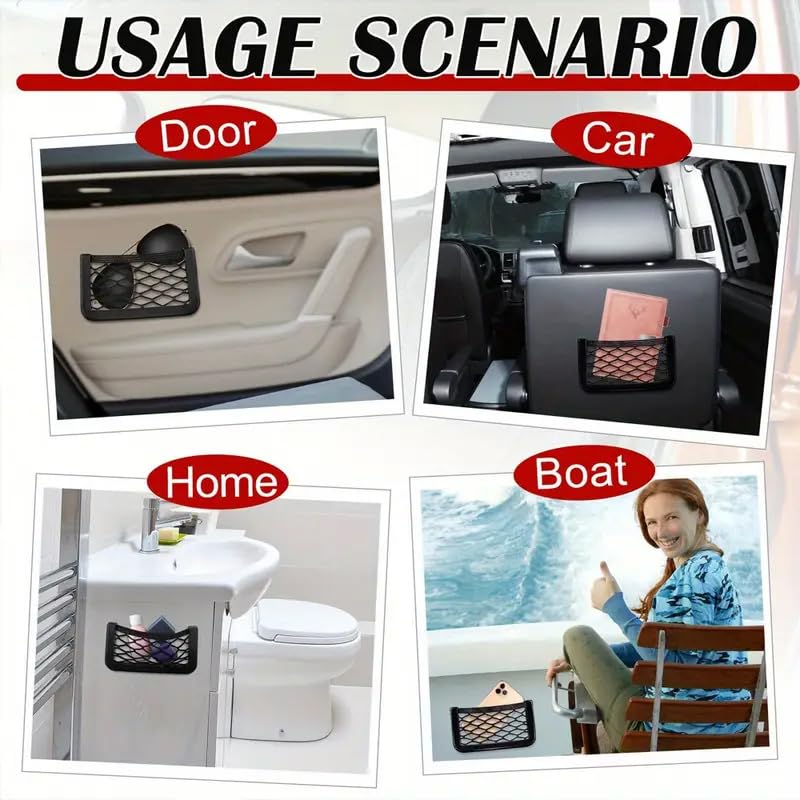 - استخدامات متعددة: يمكن استخدام جيب التخزين الشبكي للسيارة لتخزين الهواتف المحمولة والعملات المعدنية والمفاتيح والسجائر وما إلى ذلك. يمكن أيضًا استخدامه في المكتب لحمل بطاقات العمل والقلم والشاحن وكابل البيانات وما إلى ذلك. ويمكن استخدامه في المنزل لحمل المفاتيح والملاحظات والضروريات اليومية وما إلى ذلك.