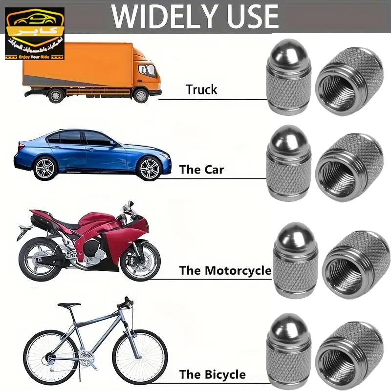 - ✅طقم غطاء صمام بلف اطارات السيارات 4 قطع معدن ، مناسبة لاطارات السيارات والدراجات والدراجات النارية