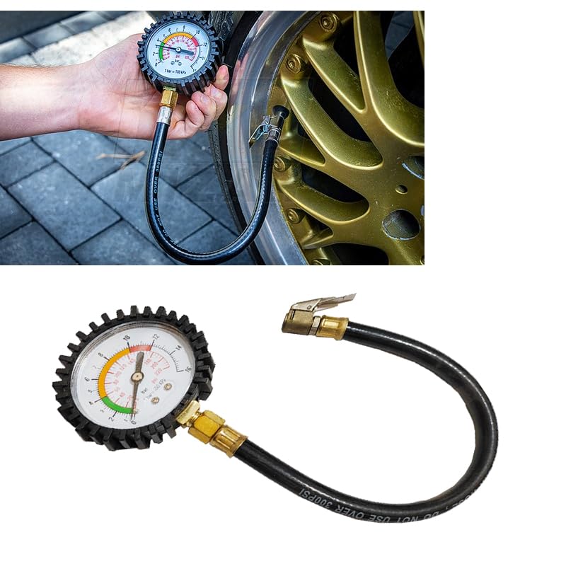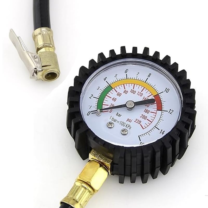 - ✅مقياس ضغط هواء الاطارات مع خرطوم مطاط بمشبك للسيارة ، مقياس ضغط هواء السيارة ، مقياس ضغط الاطارات ، هو أداة عملية مصممة لسهولة التثبيت بالإطارات أو الصمامات، مما يسمح بقراءات سريعة ودقيقة لضغط الإطارات.