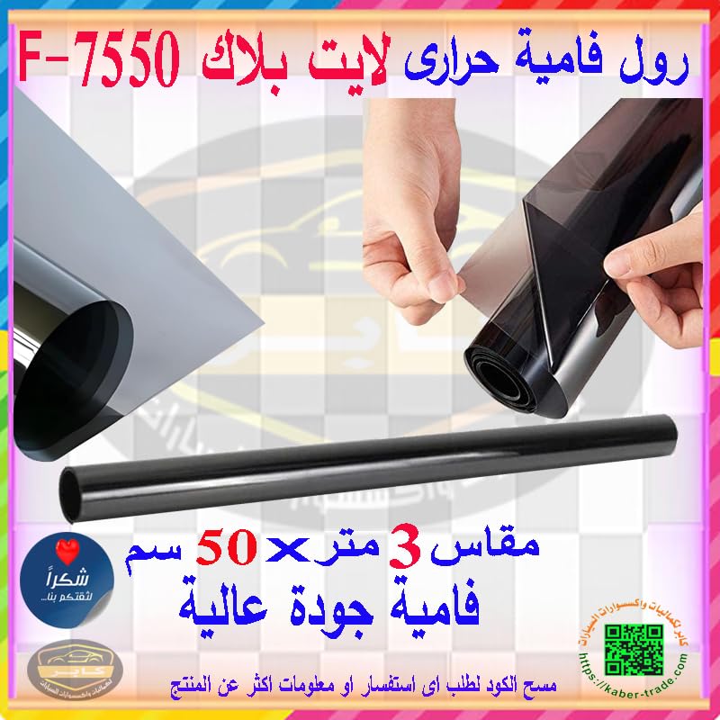 Generic - ستيكر فاميه لاصق للسيارة للحفاظ على الخصوصية والحماية من الشمس، سهل التركيب ومتعدد الاستخدامات ( لايت بلاك F7550، مقاس 3 متر فى 50 سم ) - من كابرمصر 2020