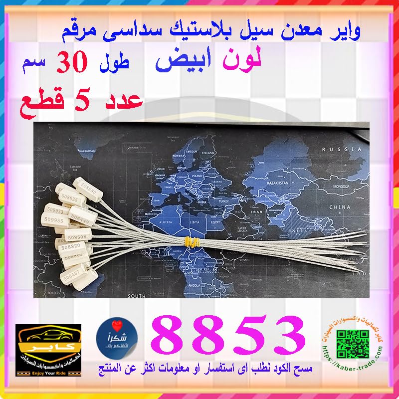 Generic - اربطة امان واير معدن شديدة التحمل مرقمة ، سيل متسلسل ، للشاحنات والمقطورات والحقائب والصناديق وغيرها (سيل واير معدن سداسى ابيض ، طول 30 سم ، عدد 5 قطع ، كود : 8853)- من كابرمصر 2020