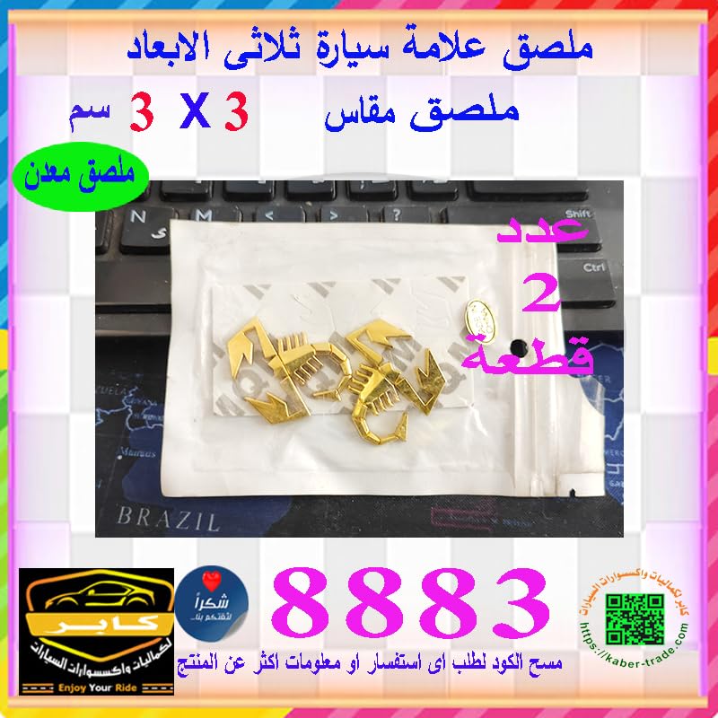 Generic - ملصق ستيكر علامة شعار سيارة ثلاثى الابعاد بديل اساسى لشارة السيارة - معدن جودة عالية - (2 قطعة عقرب ذهبى مقاس صغير ، 3 سم فى 3 سم ، كود: 8883 ) من كابرمصر 2020
