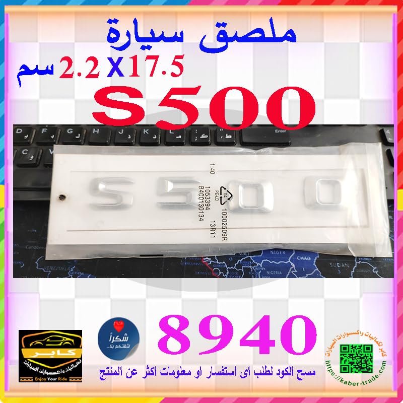 Generic - ملصق ستيكر علامة شعار سيارة ثلاثى الابعاد - معدن جودة عالية (S500 سلفر ، مقاس : 17.5*2.2 سم ، كود: 8940) من كابرمصر 2020