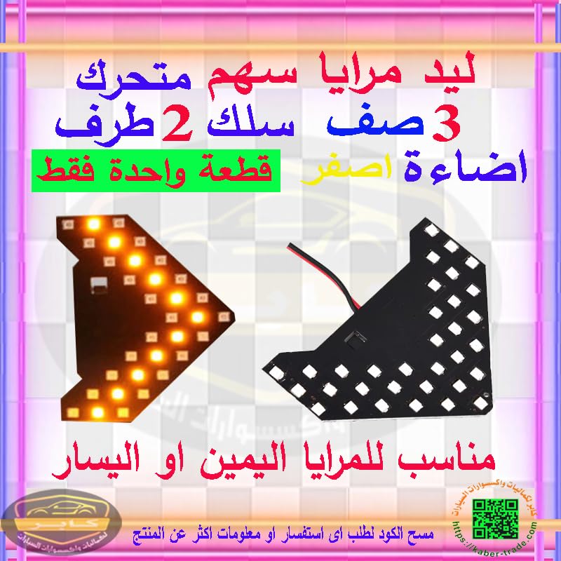 Generic - ليد سهم اضاءة مراية جانبية للسيارة باضاءة ليد مع اشارات جانبية وحركة اضاءة متحركة ( اضاءة اصفر ، قطعة واحدة ، 3 صف ) - من كابرمصر 2020