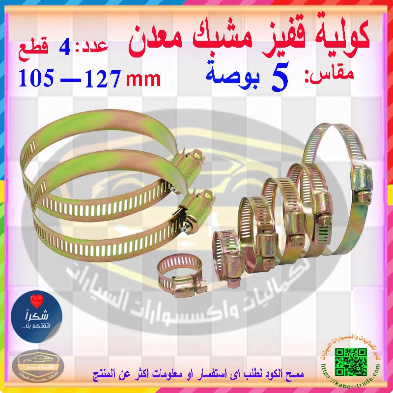Generic - مشبك خرطوم معدني ، كولية قفيز متعدد الاستخدامات ، ربط خطوط الانابيب ومنع التسرب ( مقاس 5 بوصة - 105-127ملم - عدد 4 قطع ) من كابرمصر 2020
