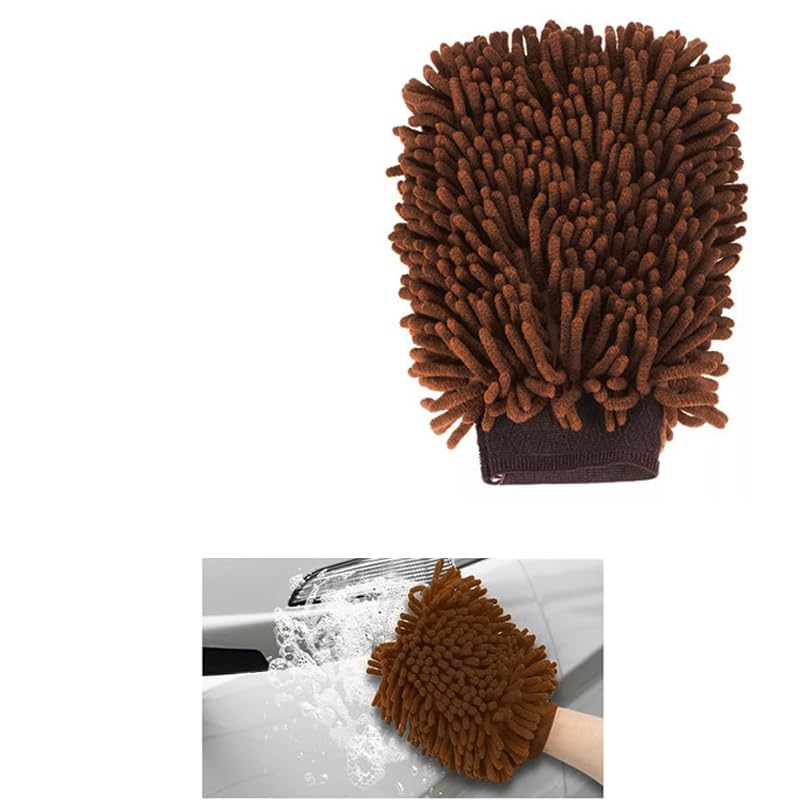 Generic - قفاز تنظيف من الألياف الدقيقة الفاخرة للاستخدام المنزلي والسيارات - القفاز مثالي لغسل السيارات فرشاة تنظيف والمنزل والمكتب(قطعة واحدة لون بني ) - من كابرمصر 2020
