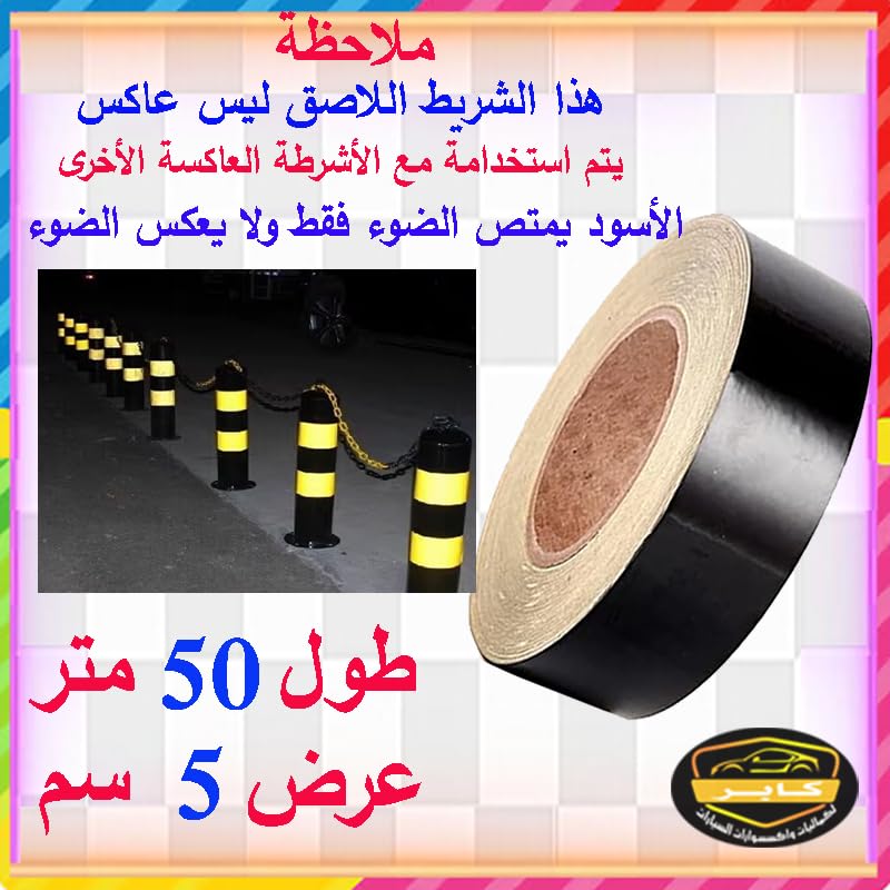 Generic - شريط تحذير للسلامة عاكس للضوء علامات ذاتي اللصق ملصق عالي الكثافة للسيارة والشاحنة (لون اسود ، طول 50 متر، عرض 5 سم) - من كابرمصر 2020