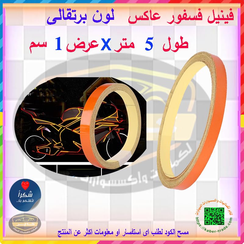 Generic - شريط تحذير للسلامة عاكس للضوء علامات ذاتي اللصق ملصق عالي الكثافة للسيارة والشاحنة (لون برتقالى ، طول 5 متر، عرض 1 سم) - من كابرمصر 2020