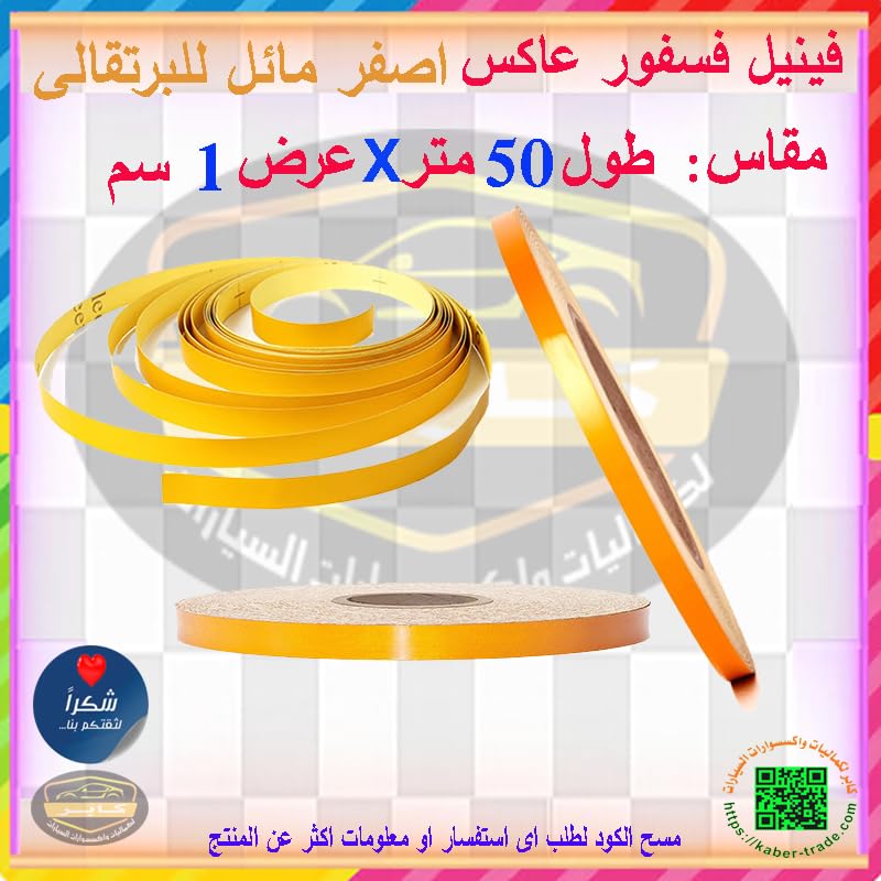 Generic - شريط تحذير للسلامة عاكس للضوء علامات ذاتي اللصق ملصق عالي الكثافة للسيارة والشاحنة (لون اصفر مائل للبرتقالى ، طول 50 متر، عرض 1 سم) من كابرمصر 2020