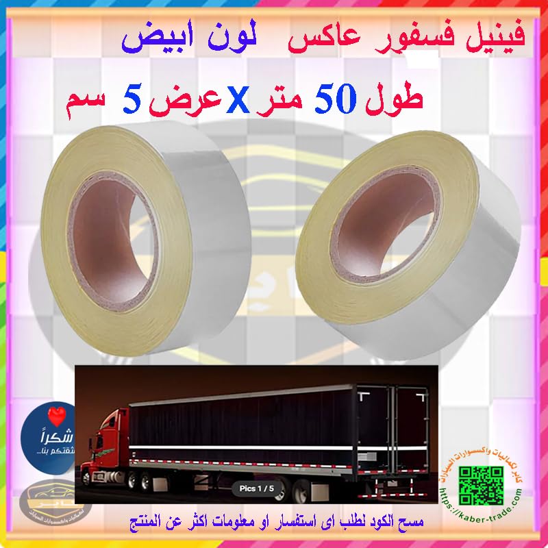 Generic - شريط تحذير للسلامة عاكس للضوء علامات ذاتي اللصق ملصق عالي الكثافة للسيارة والشاحنة(لون ابيض ، طول 50 متر، عرض 5 سم) - من كابرمصر 2020