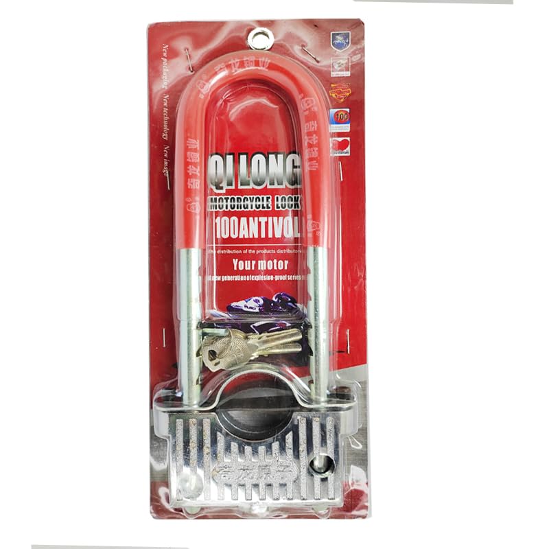 Generic - قفل امان وحماية ضد السرقة، قفل من الستانلس ستيل للدراجات النارية والموتوسيكل والسكوتر وغيرها (قفل حرف U احمر كبير وتقيل)- من كابرمصر 2020