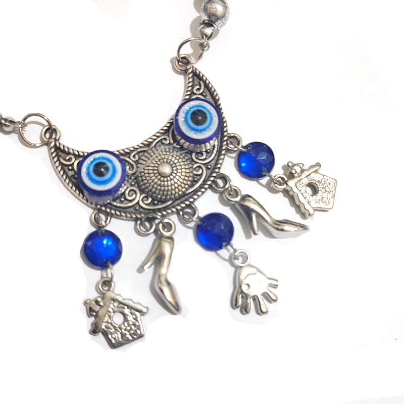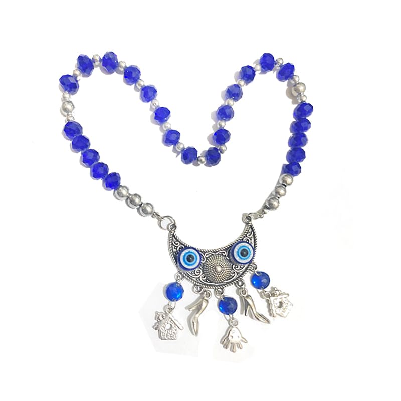 Generic - دلاية علاقة سبحة خرز عين ازرق فى سلفر للسيارة والمكتب والمنزل - معدن مع دلايات متعددة ومتنوعة الاشكال ( قطعة واحدة ، كود: 8561) - من كابرمصر 2020