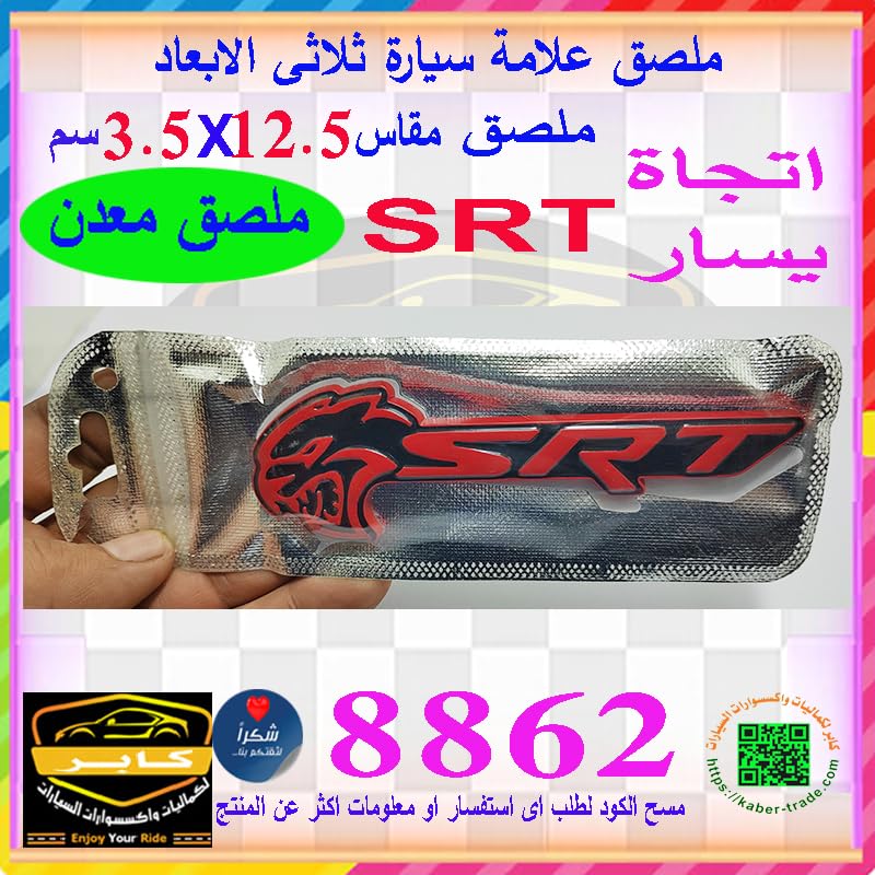 Generic - كلمه SRT لون اسود ف احمر ملصق ثلاثي الابعاد متوافقه مع كل السيارات والشاحنات وسيارات الدفع الرباعي ( اتجاه يسار ، كود: 8862) - من كابرمصر 2020