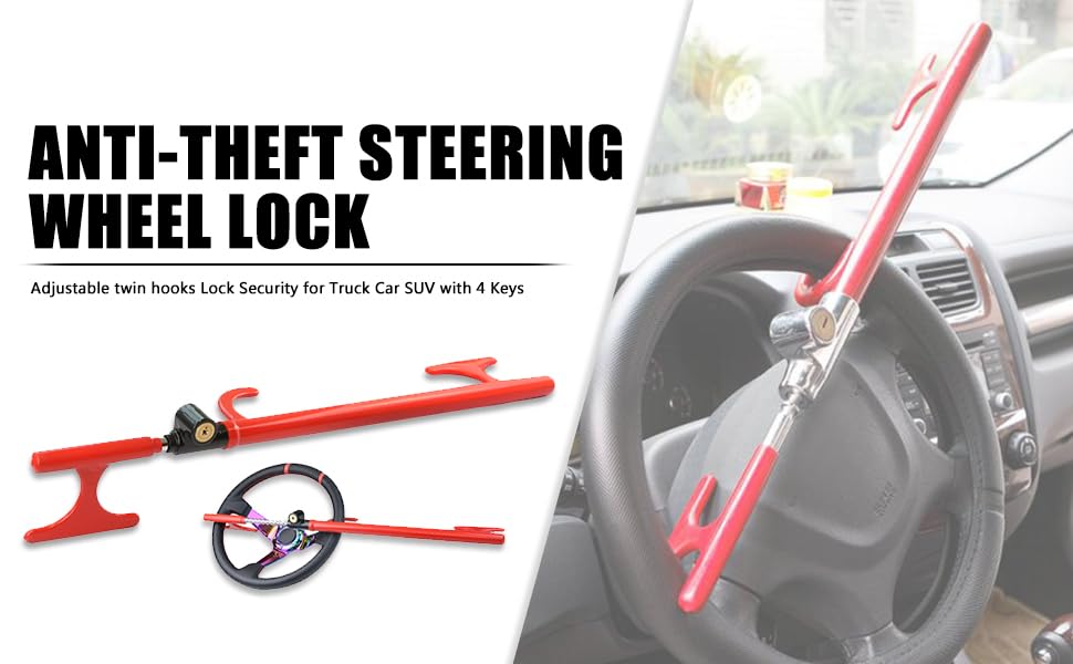 Generic - قفل عجلة قيادة عالمي عالي الأمان ستانلس ستيل مضاد للسرقة قابل للتمديد، قفل فرامل السيارة ذو خطاف مزدوج مناسب مع كل السيارات، والشاحنات وسيارات الدفع الرباعي ( قفل احمر ) - من كابرمصر 2020