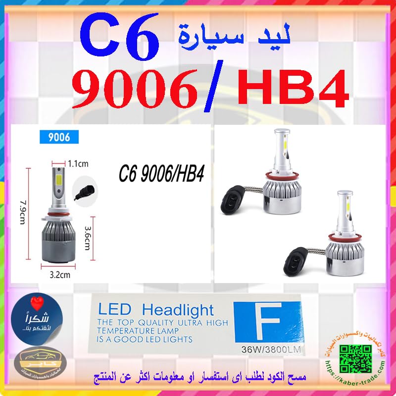Generic - طقم لمبات زينون للمصابيح الأمامية للسيارات ، مصابيح اضاءة ليد مع مروحة تبريد 36 وات ( طقم 2 قطعة - C6- 9006-HB4) - من كابرمصر 2020