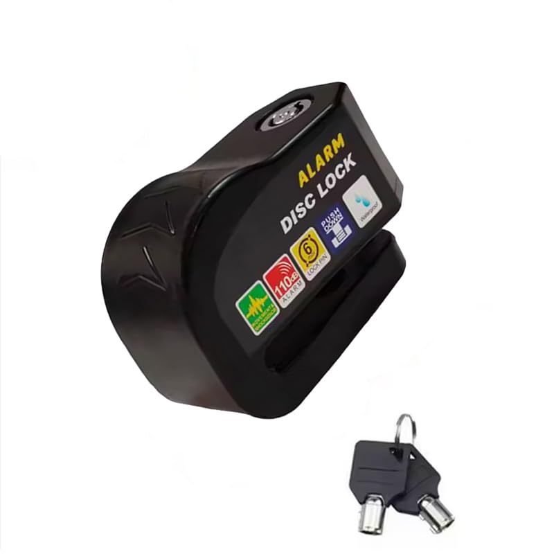Generic - قفل انذار بقوة 110 ديسيبل مضاد للسرقة مقاوم للماء قرص انذار فرامل لجميع انواع الدراجات النارية لتامين عجلات الموتوسيكلات والسكوتر (لون اسود ) - من كابر تريد