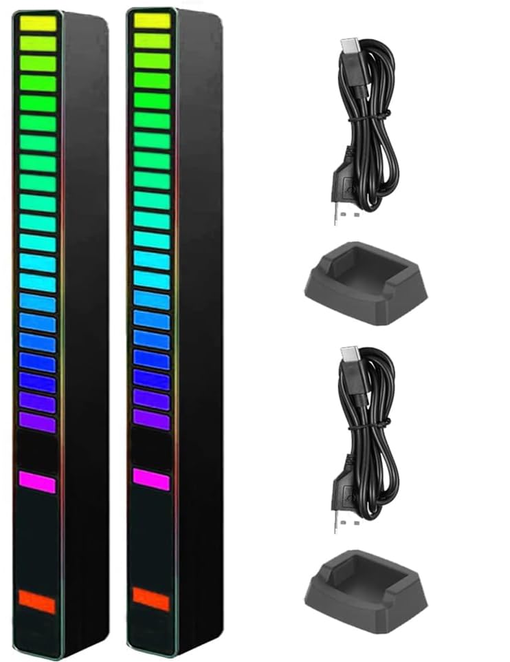 Generic - مؤشر لمستوى الصوت والتقاط وعرض الايقاع 32 بت مصباح اضاءة LED محيطي ملون بالفضاء اللوني ار جي بي يمكن تشغيله في السيارة والتلفزيون- 2 قطعة - اسود قابل لاعادة الشحن- من كابر تريد