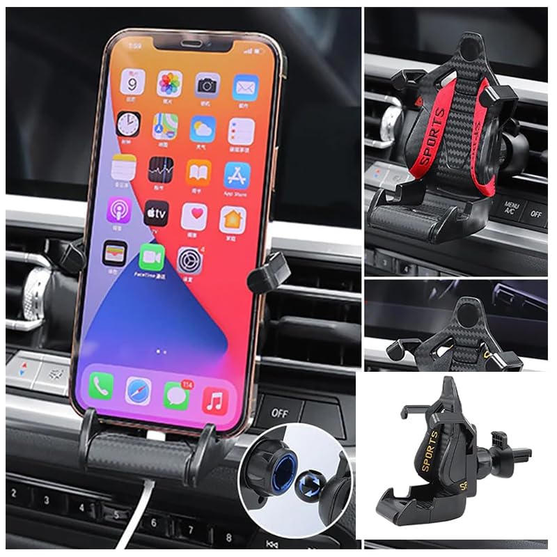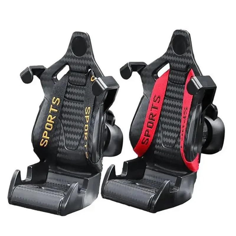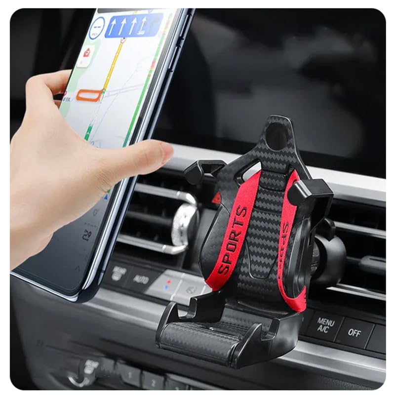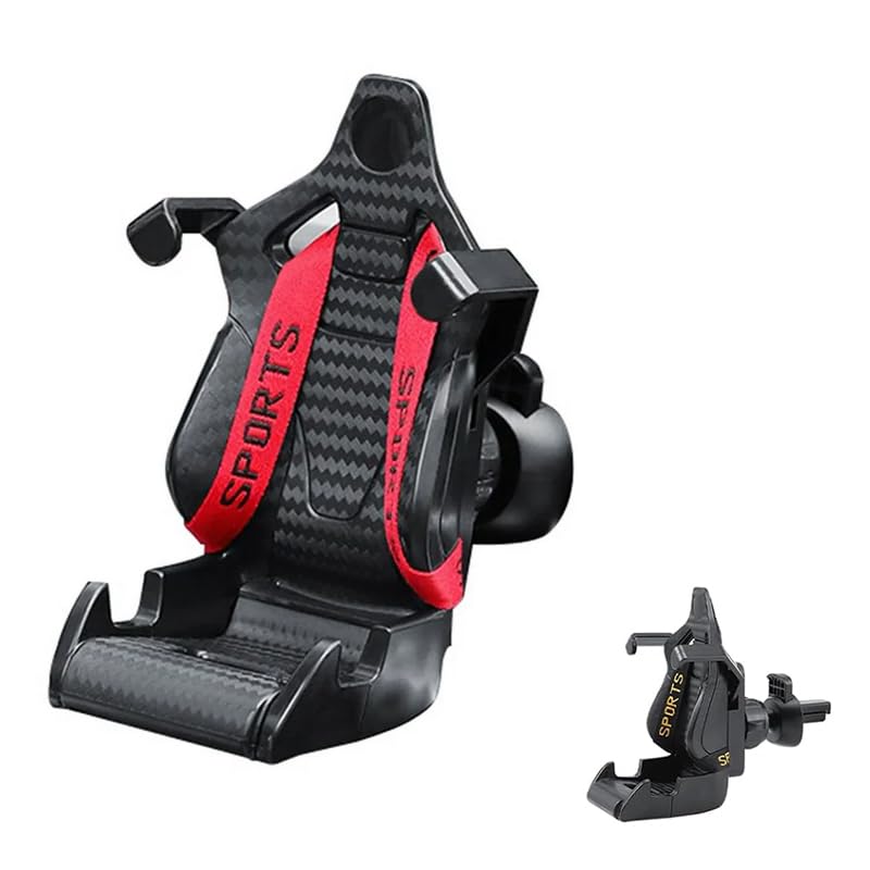 - ✅حامل هاتف للسيارة بتصميم مقعد سباق رياضي. يتميز بتصميم يشبه مقعد السيارة الرياضي مع حزام صغير لتأمين الهاتف.