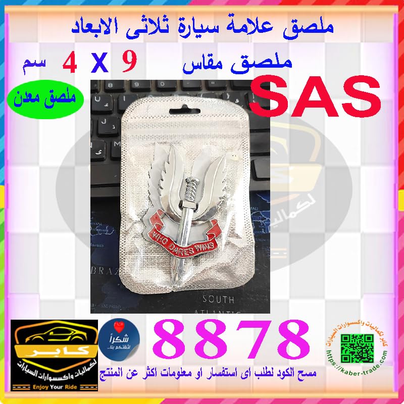Generic - ملصق ستيكر علامة شعار سيارة ثلاثى الابعاد بديل اساسى لشارة السيارة - معدن جودة عالية - (شعار SAS - مقاس 9 سم فى 4 سم ، كود:8878 ) - من كابر تريد