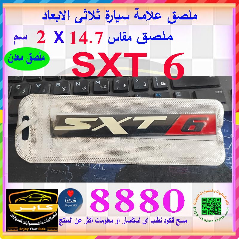 Generic - ملصق ستيكر علامة شعار سيارة ثلاثى الابعاد بديل اساسى لشارة السيارة - معدن جودة عالية - (عبارة SXT 6 - مقاس 14.7 سم فى 2 سم ، كود:8880 ) - من كابر تريد