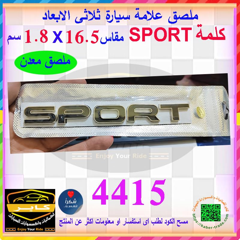 Generic - علامة ملصق شعار سيارة ثلاثى الابعاد لصق ( ملصق معدن كلمة سبورت SPORT ، مقاس 16.5* 1.8سم ، كود : 4415) - من كابر تريد