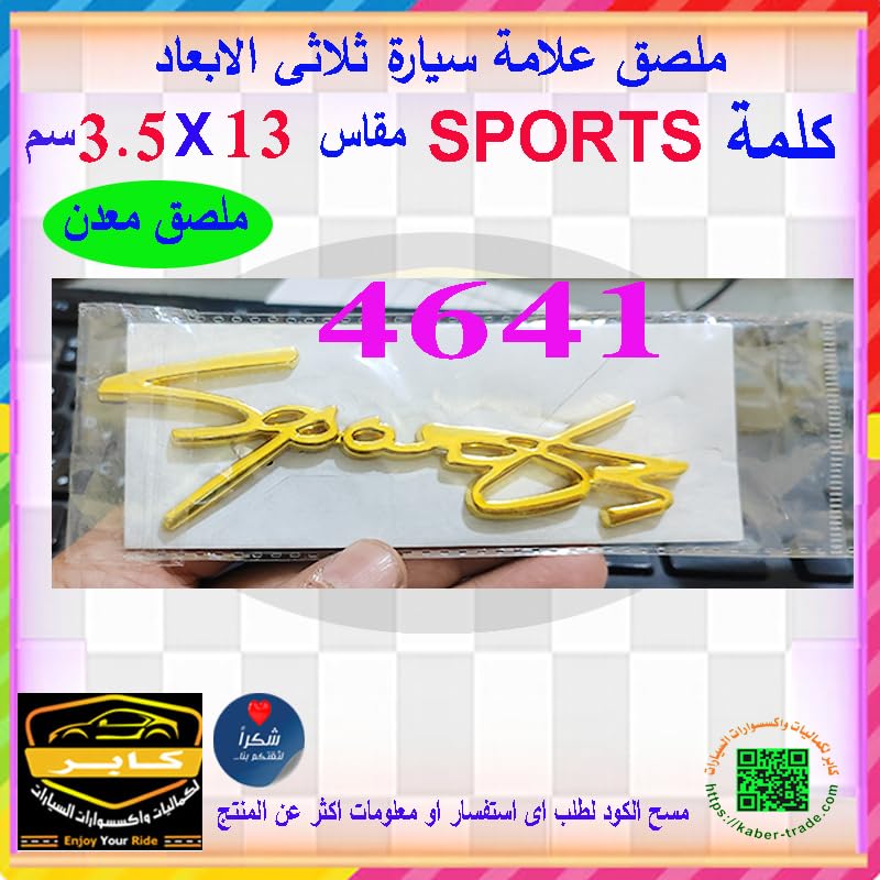 Generic - ملصق ستيكر علامة شعار سيارة ثلاثى الابعاد بديل اساسى لشارة السيارة ( ملصق معدن كلمة سبورتس SPORTS ، مقاس 13* 3.5سم ، كود : 4641) - من كابر تريد
