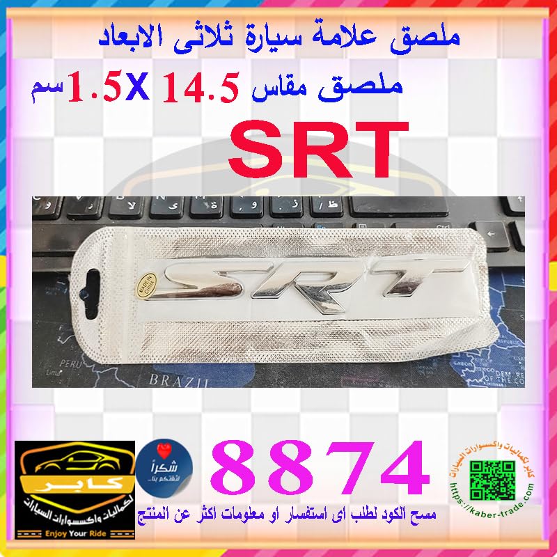 Generic - ملصق ستيكر علامة شعار سيارة ثلاثى الابعاد (مناسب ومتوافق مع كلمة SRT ، لون سلفر - مقاس 14.5 سم فى 1.5 سم ، كود:8874) - من كابر تريد